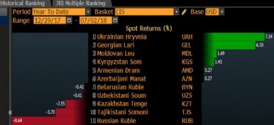 Россия все чаще принимает на себя всю тяжесть перемены настроений инвесторов, в то время как четыре постсоветские валюты показали рост, попав в топ-10 по динамике в мире в этом году.