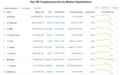 Bitcoin рост составил на 0,26% до $6 299, капитализация 109 089 млрд долларов.