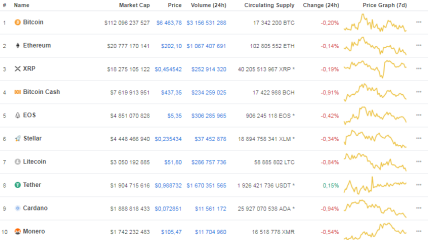 Так, за последние 24 часа Bitcoin подешевел на 0,20% – до $6 463, Bitcoin Саsh – на 0,91%, до $437, EOS – на 0,42%, до $5,35. Общая капитализация всех криптовалют практически не изменилась и составляет $208,7 млрд.