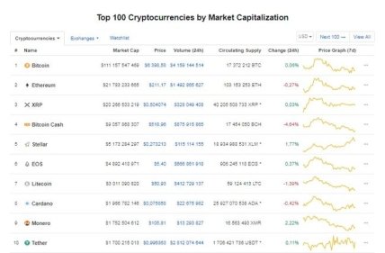 Так, за последние 24 часа Bitcoin подорожал на 0,06% – до $6 398, Ethereum – на 0,27%, до $211, XRP – на 0,03%, до $0,504, Bitcoin Саsh упал в цене на 4,64%, до $518, а вот EOS уступает свое место в рейтинге Stellar, потому как последний вырос на 1,77%, до 0,237%.