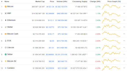 Bitcoin поднялся на 2,77% до $ 4 021 , капитализация 69 997 млрд долларов.