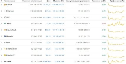 Курсы популярных криптовалют на 1 октября 2019 года.