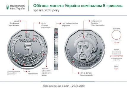 Национальный банк с 20 декабря 2019 года вводит на замену бумажных банкнот монеты номиналом 5 и начинает обновление банкнот номиналом 50 и 200 гривень, монеты в 10 гривень появятся с середины 2020 года