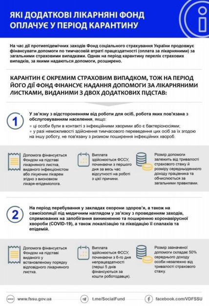 Фонд социального страхования Украины (ФССУ) в связи с мерами, направленными на борьбу с распространением коронавируса COVID-19, на время их действия расширил перечень страховых случаев, при которых работнику предусмотрена компенсация заработной платы на время нетрудоспособности, сообщает пресс-служба фонда.