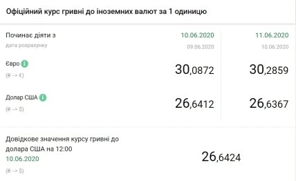 Национальный банк Украины на четвергу, 11 июня 2020 года, установил официальный курс гривни на уровне 26,6367 грн за доллар против 26,6412 грн за доллар в среду.