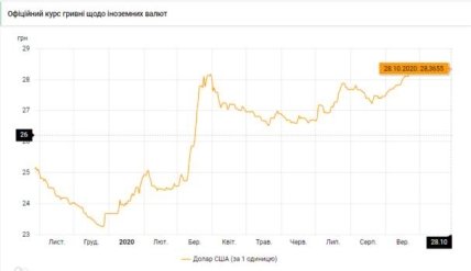 Официальный курс валют в Украине по состоянию на 28 октября 2020 года выглядит так: