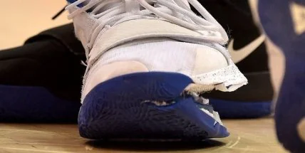 Инцидент произошел 20 февраля. Спортсмен упал и травмировал правую ногу, кроссовка модели PG 2.5 на его левой ноге порвалась.