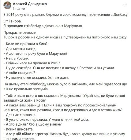 Предприниматель Алексей Давыденко – о том, почему на 10 месяце агрессии нельзя быть в одной команде с теми, кто не понимает вины россии в войне
