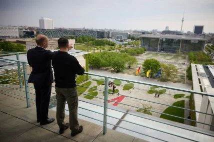 А 14 мая Зеленский прибыл в Германию, где провел переговоры с президентом Франком-Вальтером Штайнмайером и канцлером Олафом Шольцом.