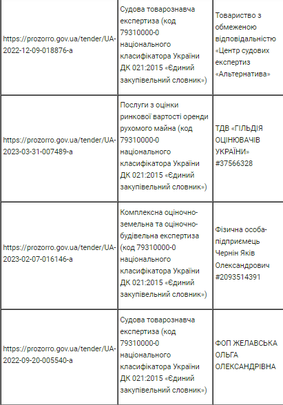 В дальнейшем по коду 7131 НАБУ закупало только строительно-оценочные экспертизы, для остальных использовал код 7931. То есть они, проводя закупки, разделяют услуги, для предоставления которых нужны инженерные, архитектурные знания и оценку в понимании рыночного исследования.