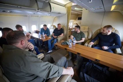 Спасибо Верховному главнокомандующему Зеленскому за то, что он уделяет внимание возвращению пленных, спасибо, что сам их возит, отмечает Дениса Прокопенко и других выдающихся героев легендарной обороны Мариуполя. Да спасибо.