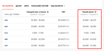 Европейская валюта на черном рынке при покупке обойдется сегодня в 36,60 гривен, при этом продажа будет стоить 36,90 гривен. Что также гораздо дороже, чем в предыдущий банковский день.