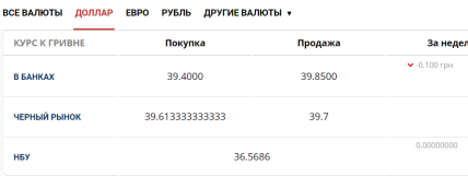 Отметим, что по данным "Минфин", сегодня, 24 февраля, средний курс доллара в украинских банках находится на уровне 39,40 грн (покупка) и 39,55 (продажа). На черном рынке "зеленый" покупают по 39,61 грн, а продают по 39,70. В то же время официальный курс Национального банка Украины — 36,56.