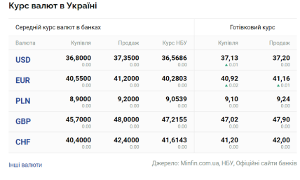 По данным "Минфина", в четверг, 13 июля, средний курс доллара в украинских банках составляет 36,80 грн (покупка) и 37,35 (продажа). Наличный курс — 37,13 (покупка) и 37,20 (продажа). В то же время официальный курс Национального банка Украины — 36,56 грн.