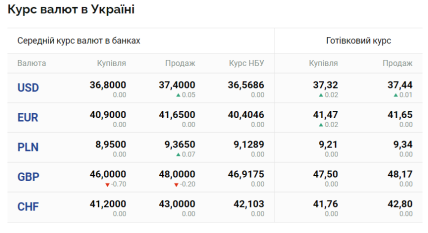 По данным портала "Минфин", в среду, 26 июля, средний курс доллара в украинских банках составляет 36,80 грн (покупка) и 37,40 (продажа). Наличный курс — 37,32 (покупка) и 37,44 (продажа). В то же время, официальный курс Национального банка Украины остается неизменным — 36,56 грн.