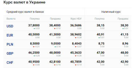 По данным портала Минфин, в понедельник, 18 сентября, средний курс доллара в украинских банках составляет 37,80 грн (покупка) и 38,40 (продажа). Наличный курс — 38,15 (покупка) и 38,30 (продажа). В то же время, официальный курс Национального банка Украины остается пока неизменным — 36,56 грн.