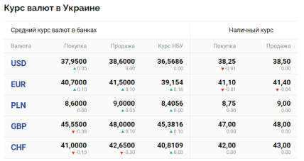 По данным Минфина, в среду, 20 сентября, средний курс доллара в украинских банках составляет 37,95 грн (покупка) и 38,60 (продажа). Наличный курс — 38,25 (покупка) и 38,50 (продажа). В то же время официальный курс Национального банка Украины — 36,56.