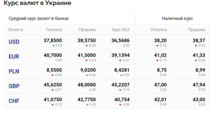 По данным Минфина, в четверг, 21 сентября, средний курс доллара в украинских банках составляет 37,85 грн (покупка) и 38,57 (продажа). Наличный курс — 38,20 (покупка) и 38,37 (продажа). В то же время официальный курс Национального банка Украины — 36,56.