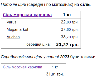 А в прошлом месяце, в августе, средняя стоимость морской соли была в пределах 31,81 гривны.