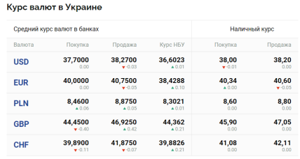 По данным портала Минфин, в четверг, 5 октября, средний курс доллара в украинских банках составляет 37,70 грн (покупка) и 38,27 (продажа). Наличный курс — 38,00 (покупка) и 38,20 (продажа). В то же время, официальный курс Национального банка Украины вырос — 36,60 грн.