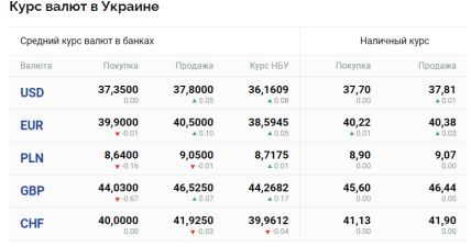 По данным портала "Минфин", во вторник, 14 ноября, средний курс доллара в украинских банках составляет 37,35 грн (покупка) и 37,80 (продажа). Наличный курс — 37,70 (покупка) и 37,81 (продажа). В то же время официальный курс Национального банка Украины — 36,16 грн.