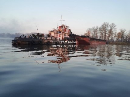 В Днепре огромная баржа врезалась в остров (видео и фото)