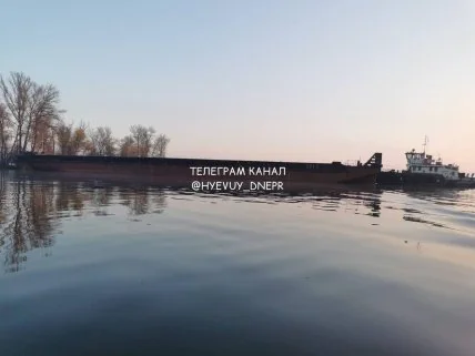 В Днепре огромная баржа врезалась в остров (видео и фото)