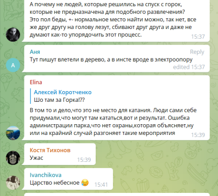 В сети шокированы тем, что произошло во время обычных, казалось бы, зимних забав. Некоторые обвиняют в случившемся администрацию парка, которая не выставила охрану и не отгоняет людей от места, которое якобы не приспособлено для таких вещей. Другие просто сочувствуют семье, где случилось такое несчастье.