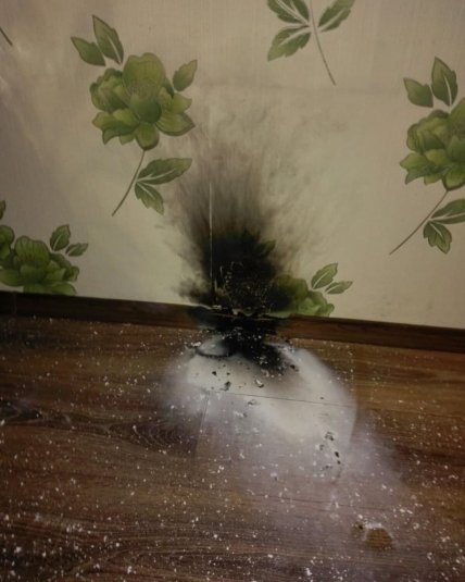 Хозяева квартиры отмечают, что если бы заряд попал чуть левее, на диван, пожар был бы неизбежен и в Новом году семья осталась бы без жилья.