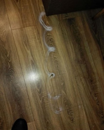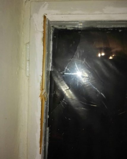 В новогоднюю ночь ракета от салюта разбила стеклопакет на закрытом окне и попала в стену над телевизором. После удара она упала на ламинат, но, к счастью, он не загорелся.