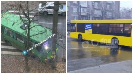 В некоторых случаях, к сожалению, не обходится и без аварий — как с одной из маршруток, "поцеловавших" столб на проспекте Богдана Хмельницкого. Несмотря на то, что пассажиров было много, о пострадавших не сообщается — вполне вероятно, что водителю удалось максимально справиться с неприятной ситуацией.