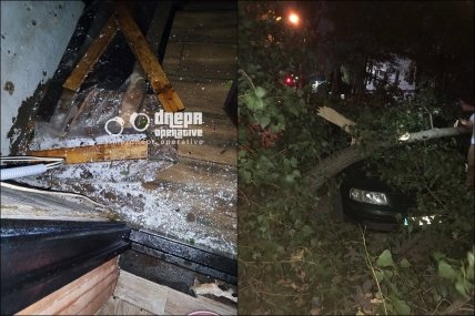 Заметим, что непогода пришла на Днепропетровщину со стороны Харьковской области, и сначало накрыло Каменское неподалеку от областного центра, — там был град и аварийные отключения света из-за погоды, оборвало много проводов, кроме того, молния ударила прямо в дом.