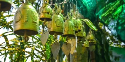 Сейчас в магазинах эзотерических товаров можно встретить специальные колокольчики, которые, согласно древнекитайскому учению фэн-шуй, нужно вешать над дверьми для очистки пространства и привлечения в помещение положительной энергии ци.