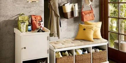 В прихожих должно быть много свободного места, но при этом там всегда хранится много вещей, таких как обувь, одежда, зонты и сумки. Правильно подобранная мебель (шкаф, стенка, полочка, вешалка) поможет разместить все нужные вещи и скрыть их от посторонних глаз.