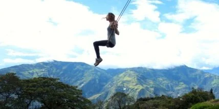 Удивительный "домик на дереве" La Casa Del Arbol в Баньос, Эквадор, был построен на краю обрыва с великолепным видном на вулкан Тунгурауа. Но главной особенностью этого дома являются экстремальные качели, закрепленные на одной из ветвей дерева, на котором построен дом. Они известны как "Swing at the End of the World" (Качели на конце света) и если вы хотите покачаться на этих качелях, то будьте готовы к тому, что раскачиваться вам придется на высоте 2600 метров над уровнем моря. Качели абсолютно не оборудованы никакими средствами безопасности, что дарит отчаянным смельчакам неповторимые острые ощущения.