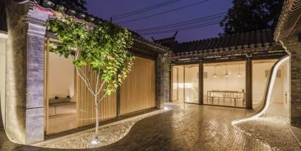 Раннее это была традиционная китайская застройка Сыхэюань, для модернизации которой усовершенствовали инфраструктуру. Внутренний двор украшает волнистый пол из серого кирпича, который соединяет интерьер дома с его открытой частью, переходя на стены и крышу. За полученной конструкцией скрыты вспомогательные помещения — санузел, кладовая и кухня — а рядом спроектированы обеденная зона и прихожая. Дерево боярышника, растущее во дворе, сохранили и теперь оно оживляет дом.