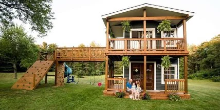 Отец двух маленьких девочек, Эйвери и Вайолет, решил построить у себя во дворе домик для игр, но увлекся, и в результате получился целый двухэтажный дом.