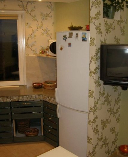 Балкон на кухне можно использовать в качестве места для посудного шкафа или бытовой техники. Такому решению обрадуется любая хозяйка: согласитесь, что в кухонной зоне лишнего места не бывает.