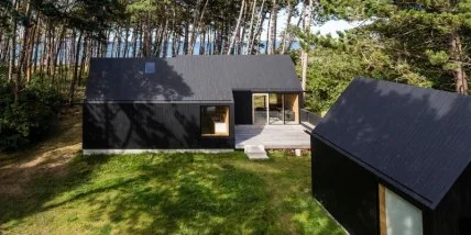 Комплекс из трёх летних домиков в Западной Зеландии, Дания, спроектированный студией RUBOW arkitekter, расположен в сосновой роще на берегу Балтийского моря.