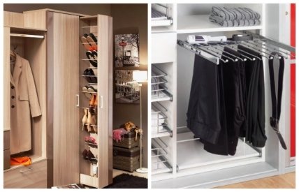 Конечно же, лучше приобрести шкаф с выдвижными системами. В нем можно расположить довольно много вещей, да и порядка будет больше.