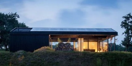 Характерный польдерный пейзаж возле дюн Северной Голландии формирует образ этой современной загородной виллы.
