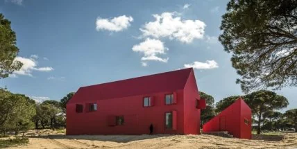 Расположенный в внутри роскошной, на 500 га, рощи пробковых дубов на песчаном участке, этот простой дом с традиционным архетипом стал ярким пятном среди одинакового во всех направлениях лесного ландшафта.