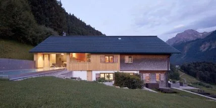 Цель этого проекта состояла в том, чтобы создать тихое пространство с захватывающим видом на окружающий горный пейзаж австрийских Альп. Существующее здание с традиционным архетипом было расширено и теперь включает в себя спа-центр. На открытой площадке имеется умывальник Kneipp, тропический душ и умывальник с холодной водой, на западной открытой площадке расположен пейзажный бассейн. Пространственная идея расширения — удлинить главное здание без влияния на сложившийся образ. Снаружи стены покрыты швейцарской сосной и дранкой, кровля металлическая. Пол из необработанного дуба, потолок из текстильных панелей лоден. Изнутри здание удивляет ядром темных ровных стен, включая душ, сауну, камин и два инфракрасных кресла.
