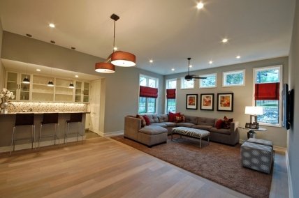 Еще один удачный способ зонирования – это проем. В дальней части комнаты можно расположить мини-библиотеку, домашний офис или сделать место для отдыха. В зависимости от ваших пожеланий, можно оборудовать проем раздвижными дверями или оставить его открытым. Мы советуем остановиться на втором варианте, так как в этом случае пространство не будет загромождено, а комната покажется больше, чем она есть на самом деле.