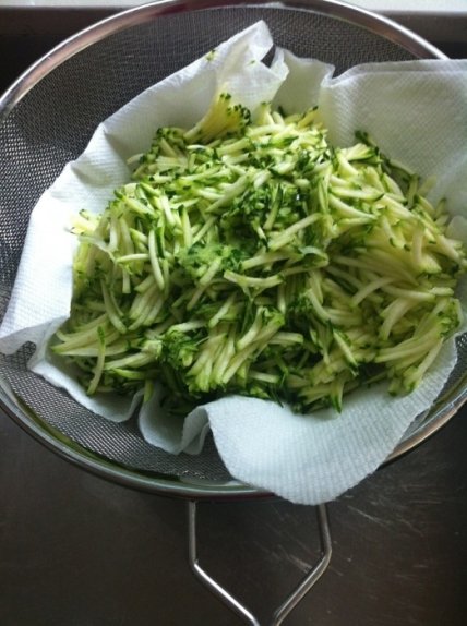 Положите в сито бумажное полотенце и сверху высыпьте огурец для салата.