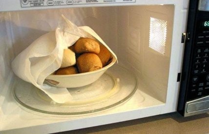 Используйте влажное бумажное полотенце, когда готовите в микроволновке, чтобы блюда не были резиновыми.
