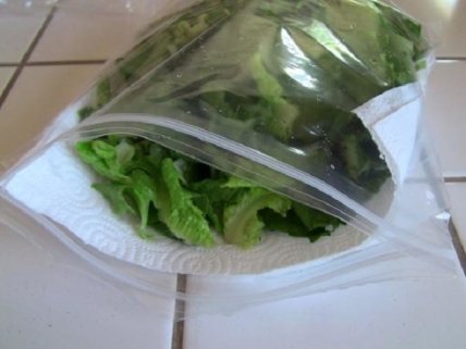Упакуйте листья салата вместе с полотенцем в пакет на защелке.