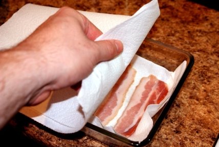 Прежде сем положить бекон в микроволновку, положите его между полотенцами.