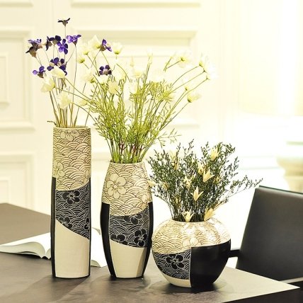 На полку можно поставить три вазы, которые будут смотреться гармоничнее, чем две.