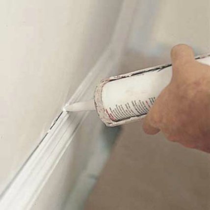 Плинтуса будут выглядеть намного аккуратнее, если между ними и стеной не будет никаких зазоров. Заделать их очень просто при помощи силиконового герметика того же цвета, что и плинтус.
